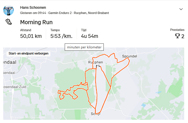De grafiek van de afgelopen zaterdag (50K) en dan zie ik